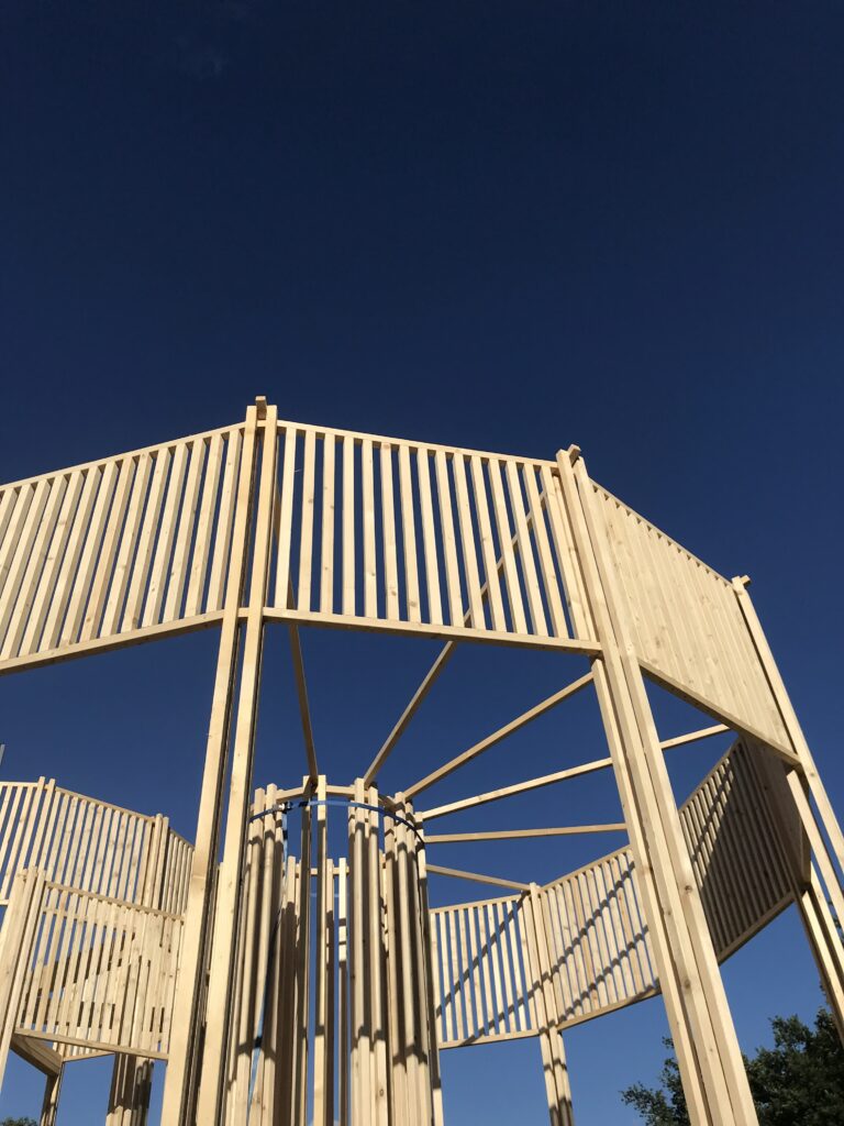 In the early stages of the circular constructions built in Lullin Park, she mentioned the archeological sites of Stonehenge, the tepees of the Great Plains Indians and the huts of lake-dwellers. Coproduction Open House Geneva and 90_20.